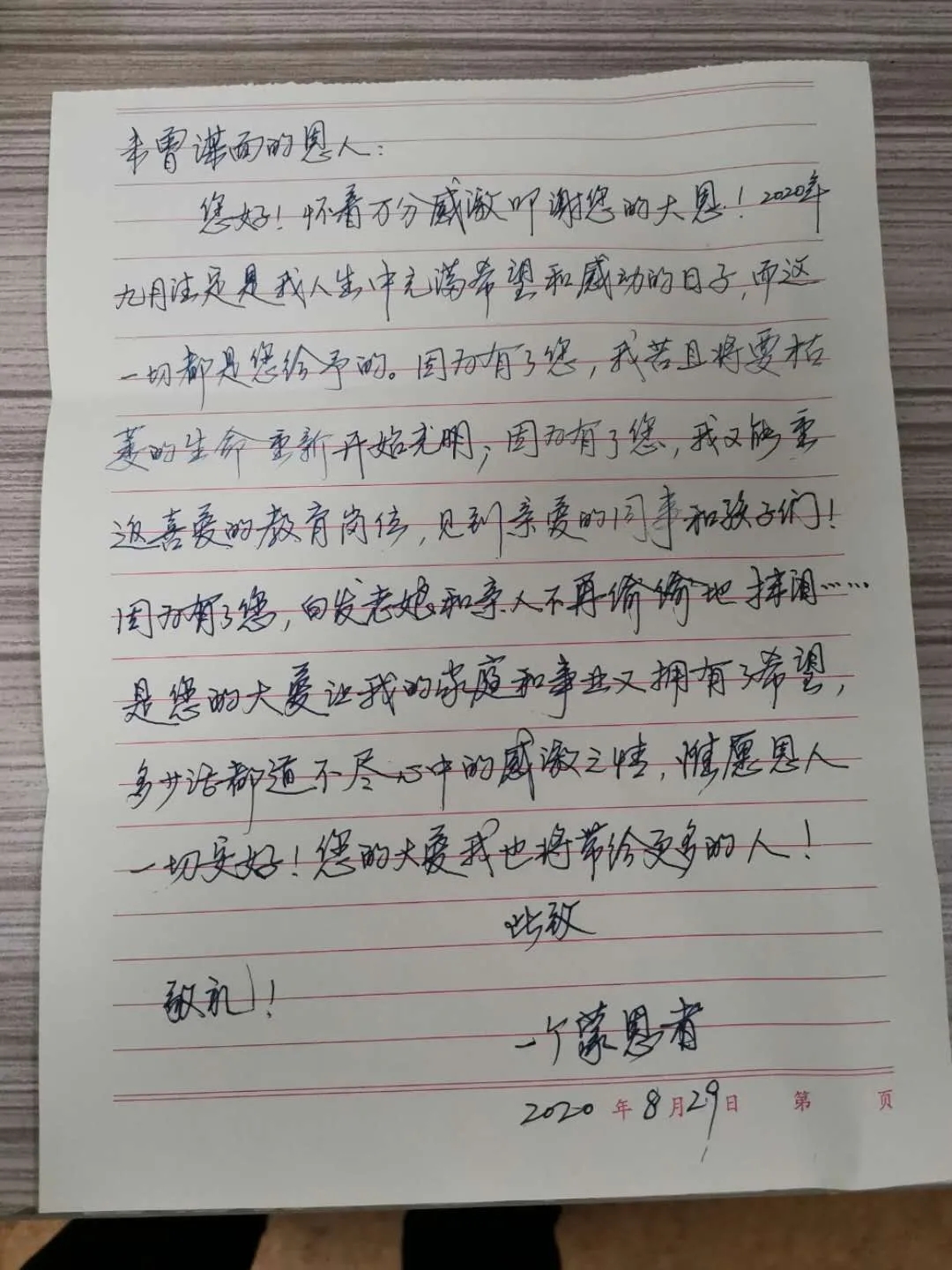 “通過這封飽含深情的信,我得知我的‘有緣人’,是一名老師。在我準(zhǔn)備捐獻之前,他還一直堅守在工作崗位上。”杜咪動情地說,“我是一名退伍軍人,在部隊中,國家教會了我要以人民的利益為中心,要以人民的安全為使命;在盛世中,董事長教導(dǎo)了我,是社會上的人民給予了我們一切,我們需要常懷感恩之心,要以大愛之心承載社會責(zé)任。為此我有義務(wù),也有責(zé)任回報社會。”