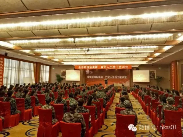 2016年4月,由盛世集團團隊打造教練技術首席講師、中華美業大型營銷會務金牌主持人Sophie老師,盛世華美學院軍事拓展曹教官及盛世精英團隊,攜手金體妍國際【贏定人生特訓營】圓滿落幕。金體妍團隊眼神堅毅,信念執著,以“星星之火可以燎原”之勢去重塑自我!對于理想,信心滿滿;認識自己,改變自己,突破自己!從自身改變去影響整個美業,攜手共創輝煌!