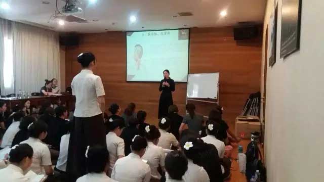 正在為寶貝們講解頸部知識的姚總,寶貝們積極互動,課堂氛圍十分融洽